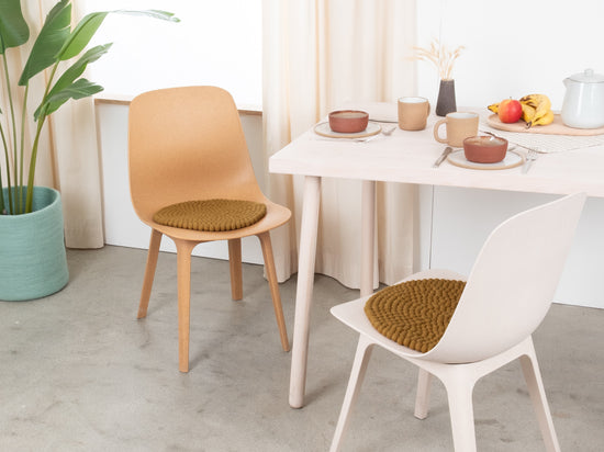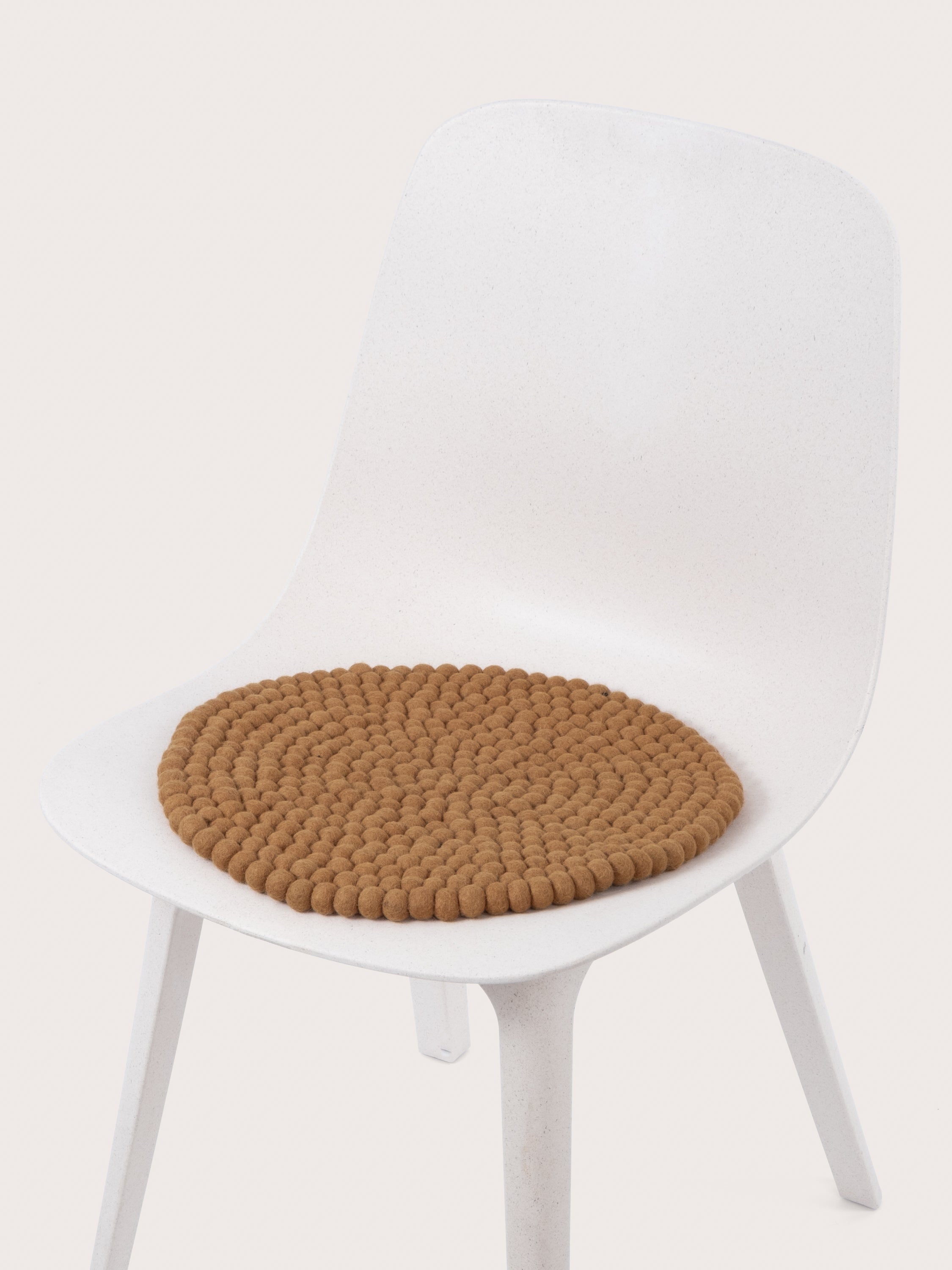 The caramel-colored seat pad Omar brings warmth and softness to your favorite chair. Made from pure new wool, handcrafted in Nepal and produced under fair conditions. myfelt seat pads are water- and dirt-repellent and can be used on both sides.