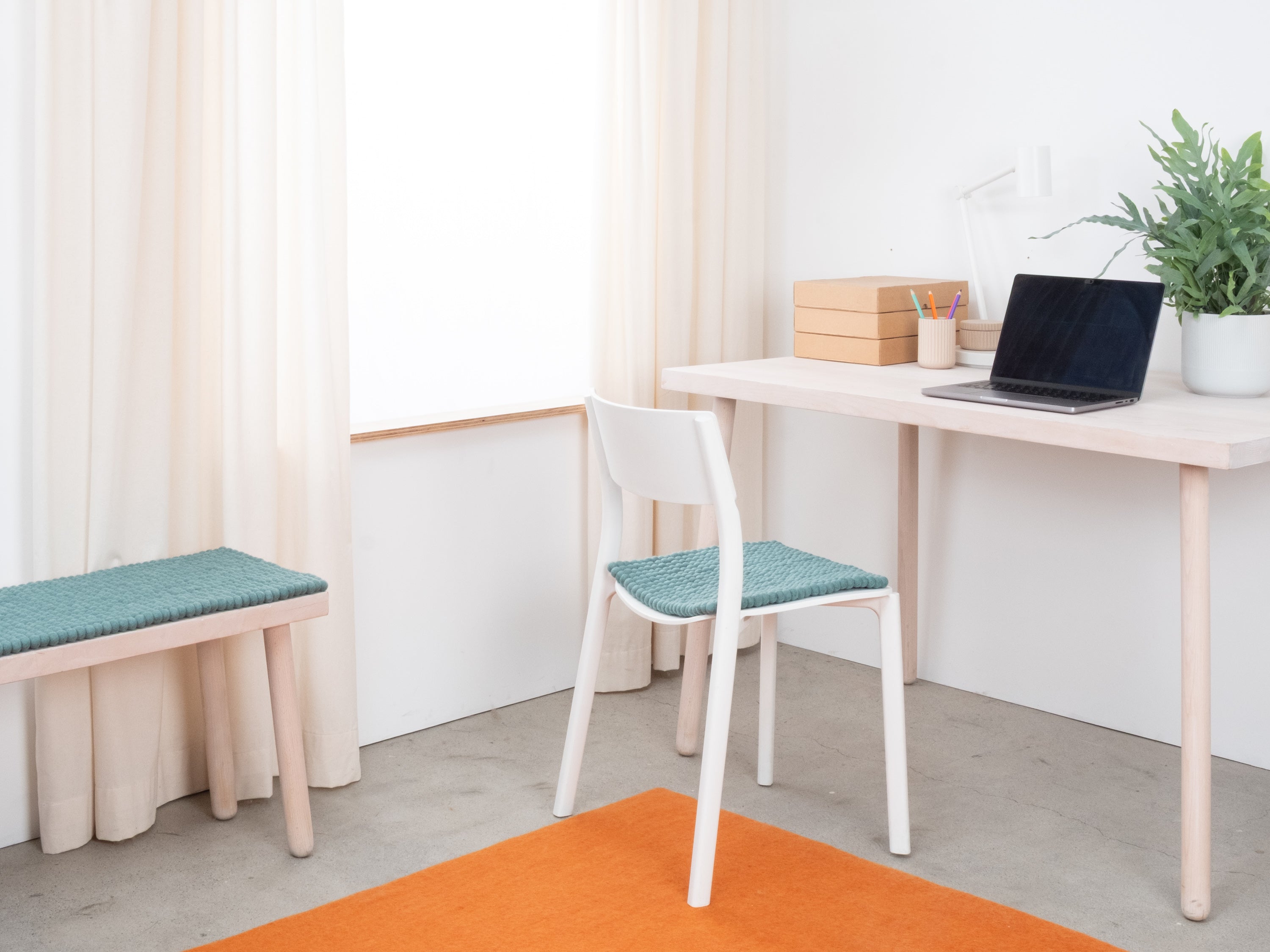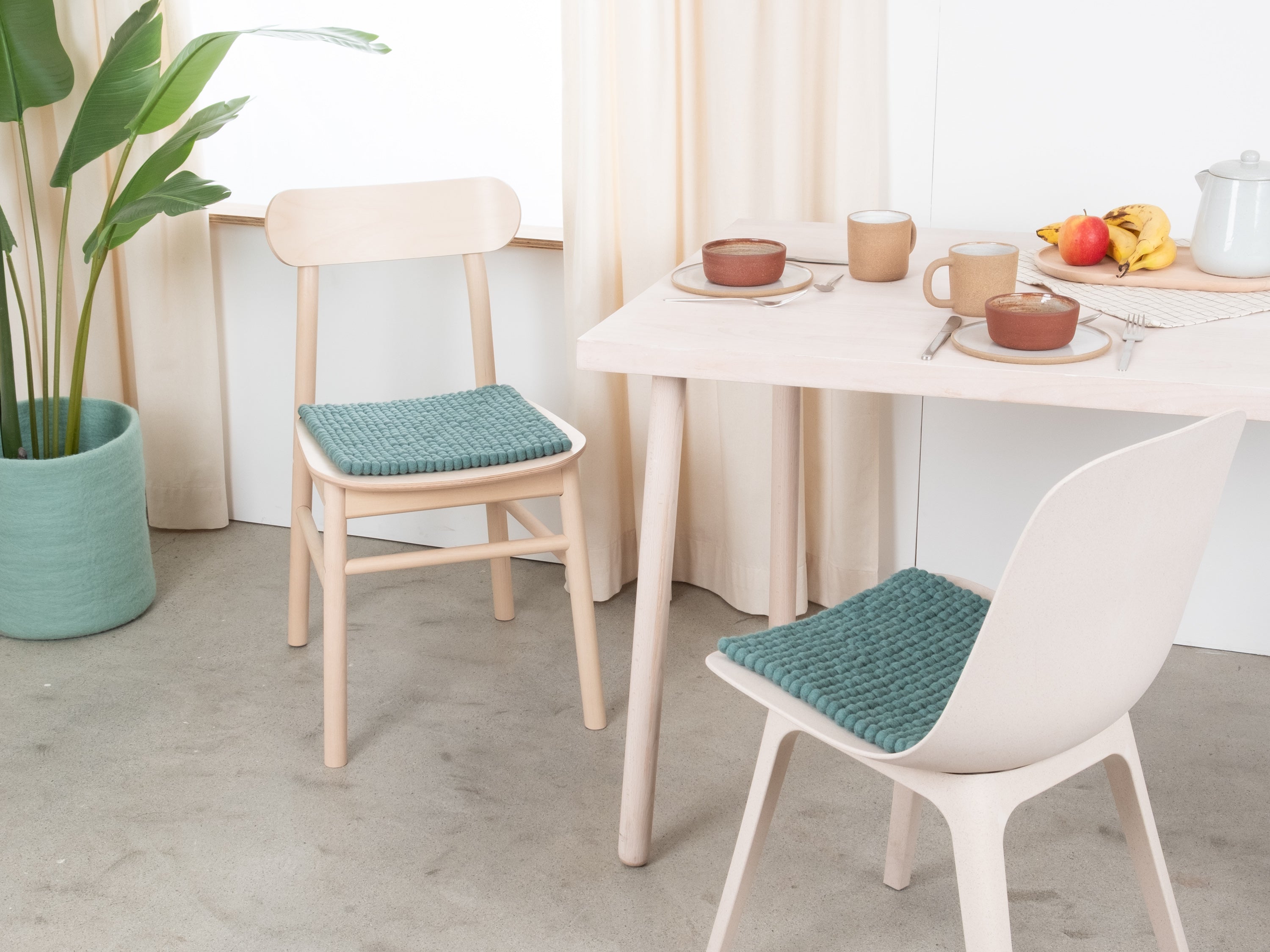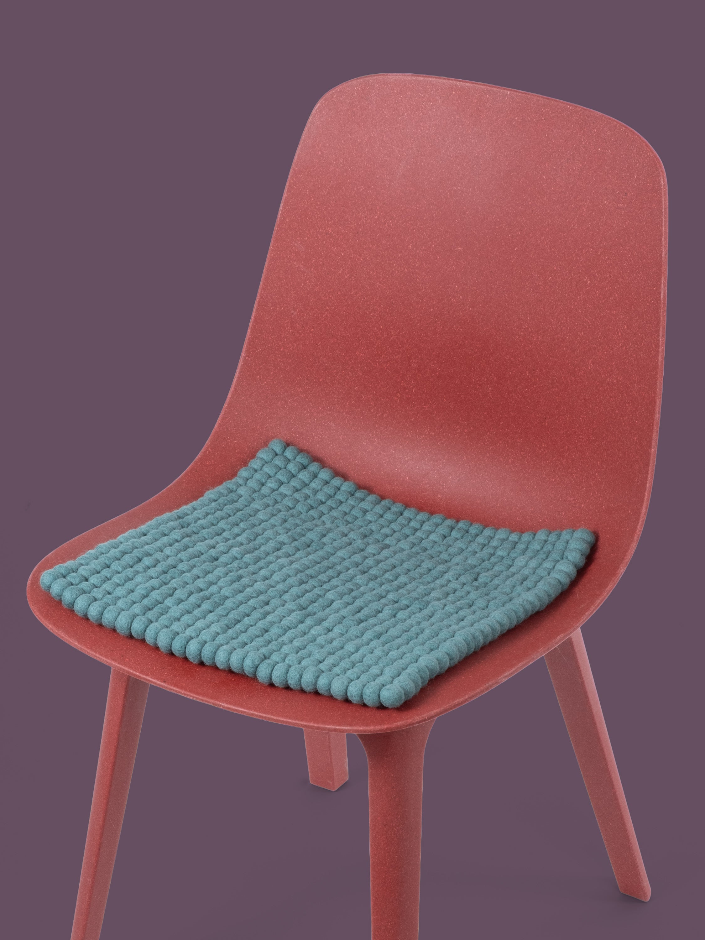 The aqua-colored seat pad Taro brings warmth and softness to your favorite chair. Made from pure new wool, handcrafted in Nepal and produced under fair conditions. myfelt seat pads are water- and dirt-repellent and can be used on both sides.
