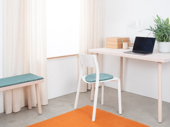 The aqua-colored seat pad Taro brings warmth and softness to your favorite chair. Made from pure new wool, handcrafted in Nepal and produced under fair conditions. myfelt seat pads are water- and dirt-repellent and can be used on both sides.