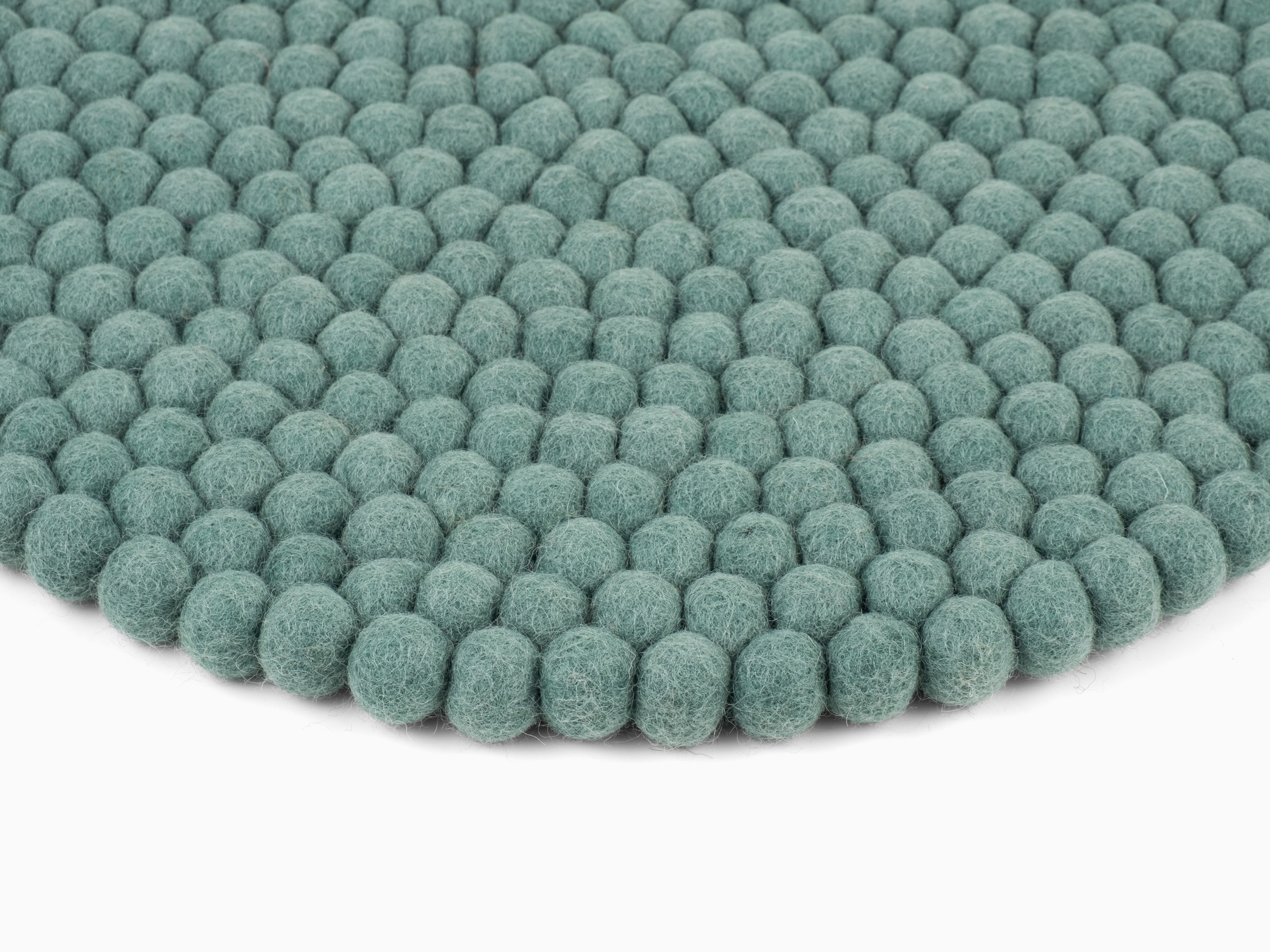 Round, aqua-colored seat pad made of pure new wool.