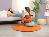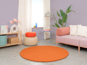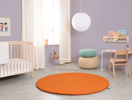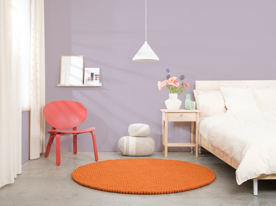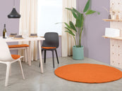 Afra adds a warm orange to the room. Inviting and energising without being loud. Perfect for warming cooler spaces or adding accents. Robust, easy-care and pleasant underfoot. Handcrafted in Nepal—100% pure new wool.