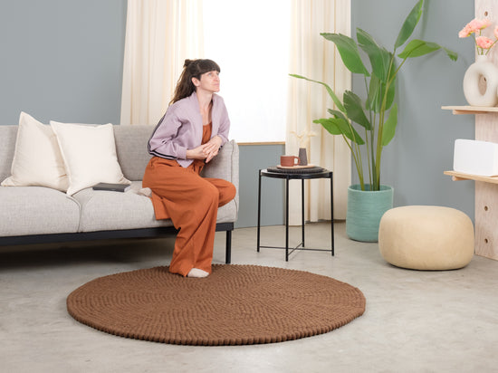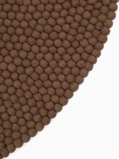 Egon comes in warm chocolate brown. This felt ball rug grounds any room, adding cosiness and structure. Ideal for reading corners and living areas that welcome warmth. Hard-wearing, keeps its shape and comfortable underfoot. Handcrafted in Nepal—100% pure new wool.