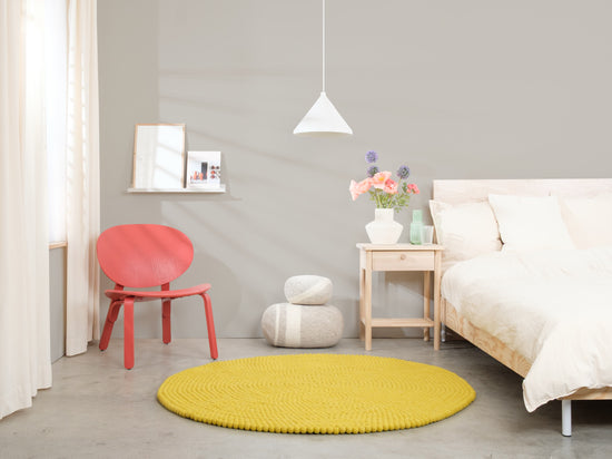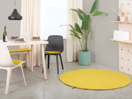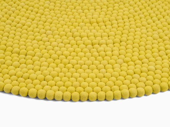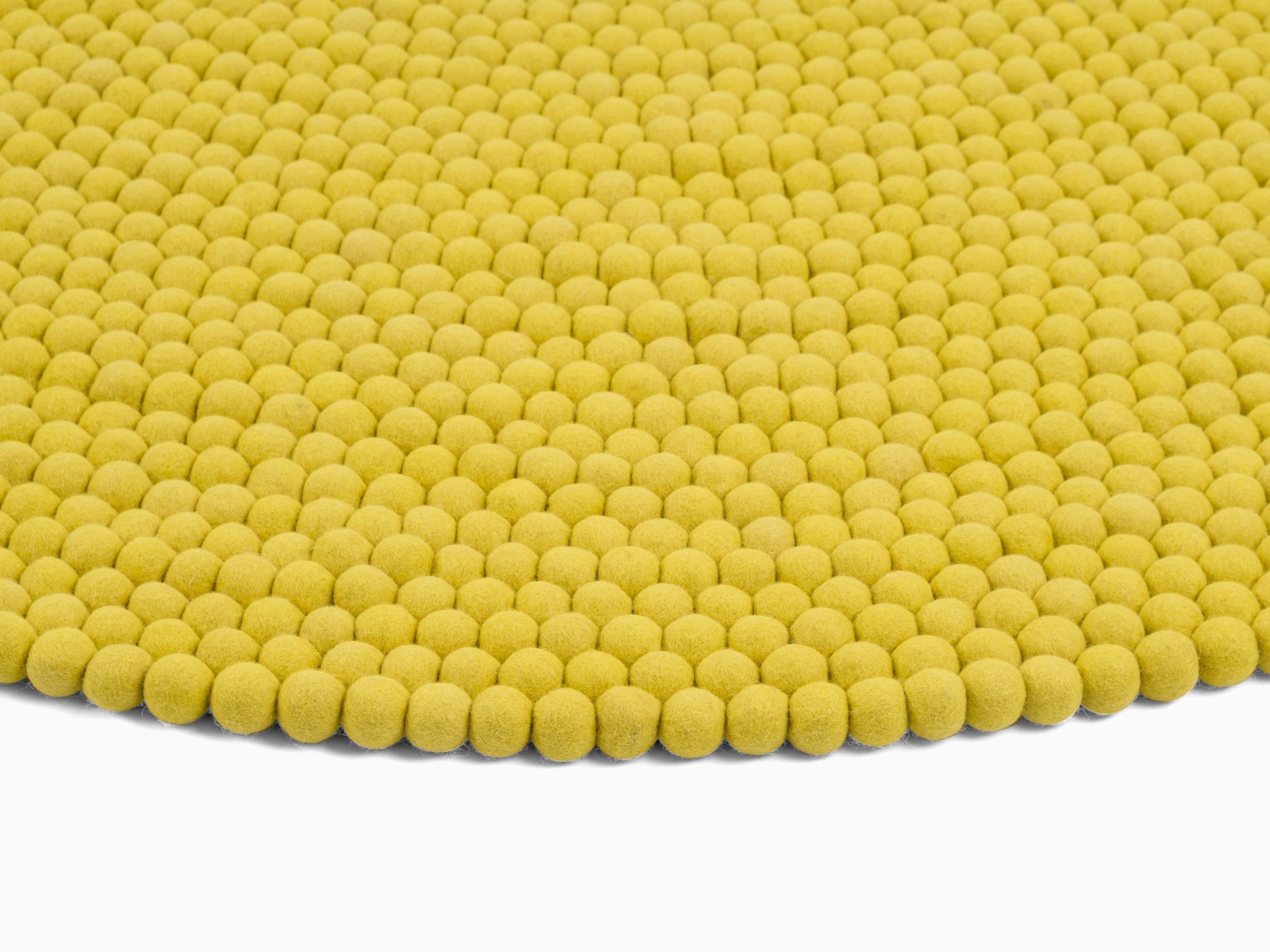 Kata is a felt ball rug in a fresh yellow-green. Bright, lively and full of energy, it brings movement to the room—cheerful in the living area or a point of light in your workspace. Adds vibrancy and lightness. Soft, robust and easy to care for. Handcrafted in Nepal from 100% pure new wool.