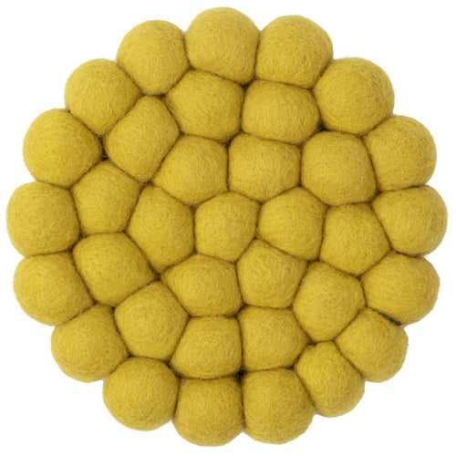 Round, felt ball rug made out of pure new wool.