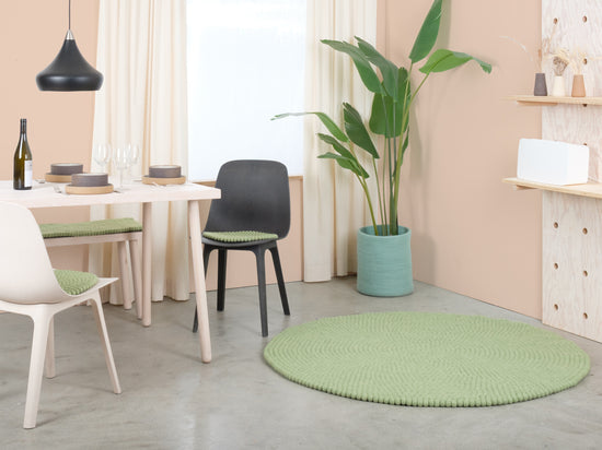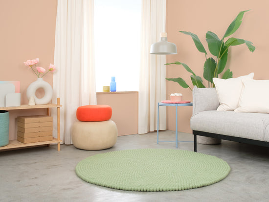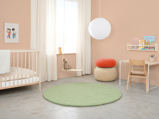 Lasse is a felt ball rug in a gentle sage green. It brings calm and lightness to any room and pairs beautifully with wood, white and natural tones. Soft underfoot, everyday-robust and naturally dirt-repellent. Handcrafted in Nepal from 100% pure new wool.