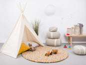 With its discreet warmth, Liese shines within her own four walls. Soft honey tones, hints of yellow gold as well as contrasting pigeon blue and lime green form a cosy and light ensemble. With her well-balanced play of colours, Liese ensures carefree lightness and positive energy without pushing herself into the foreground. It remains a real eye-catcher and provides sustainable impulses in small and large rooms. Liese can be coordinated with your own interior in no time at all, blends in harmoniously and creates a cosy place of beauty. A felt ball carpet full of esprit.