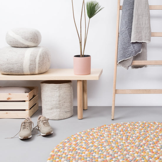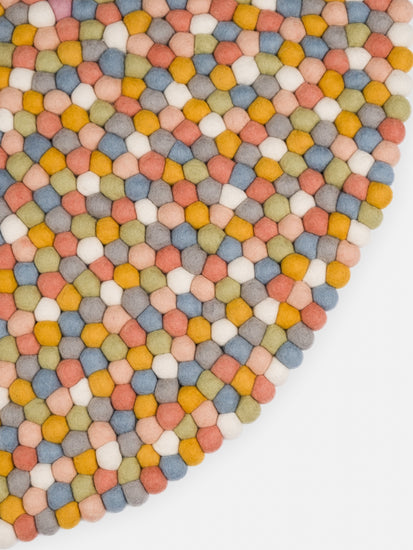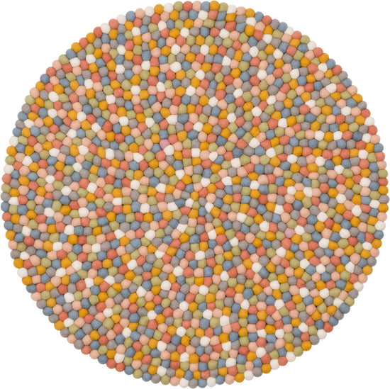 Round, colourful Felt Ball Rug made from Virgin Wool.