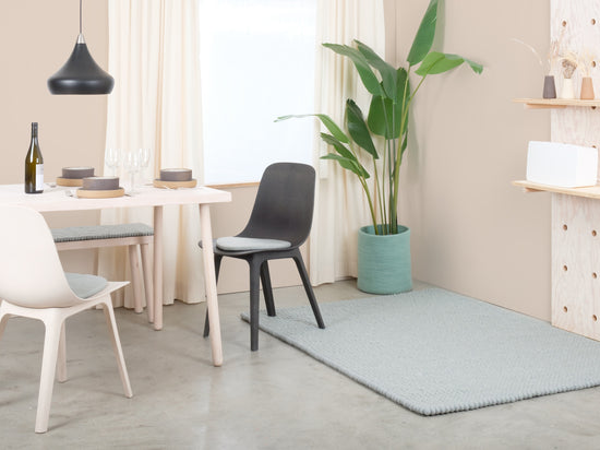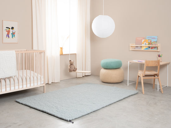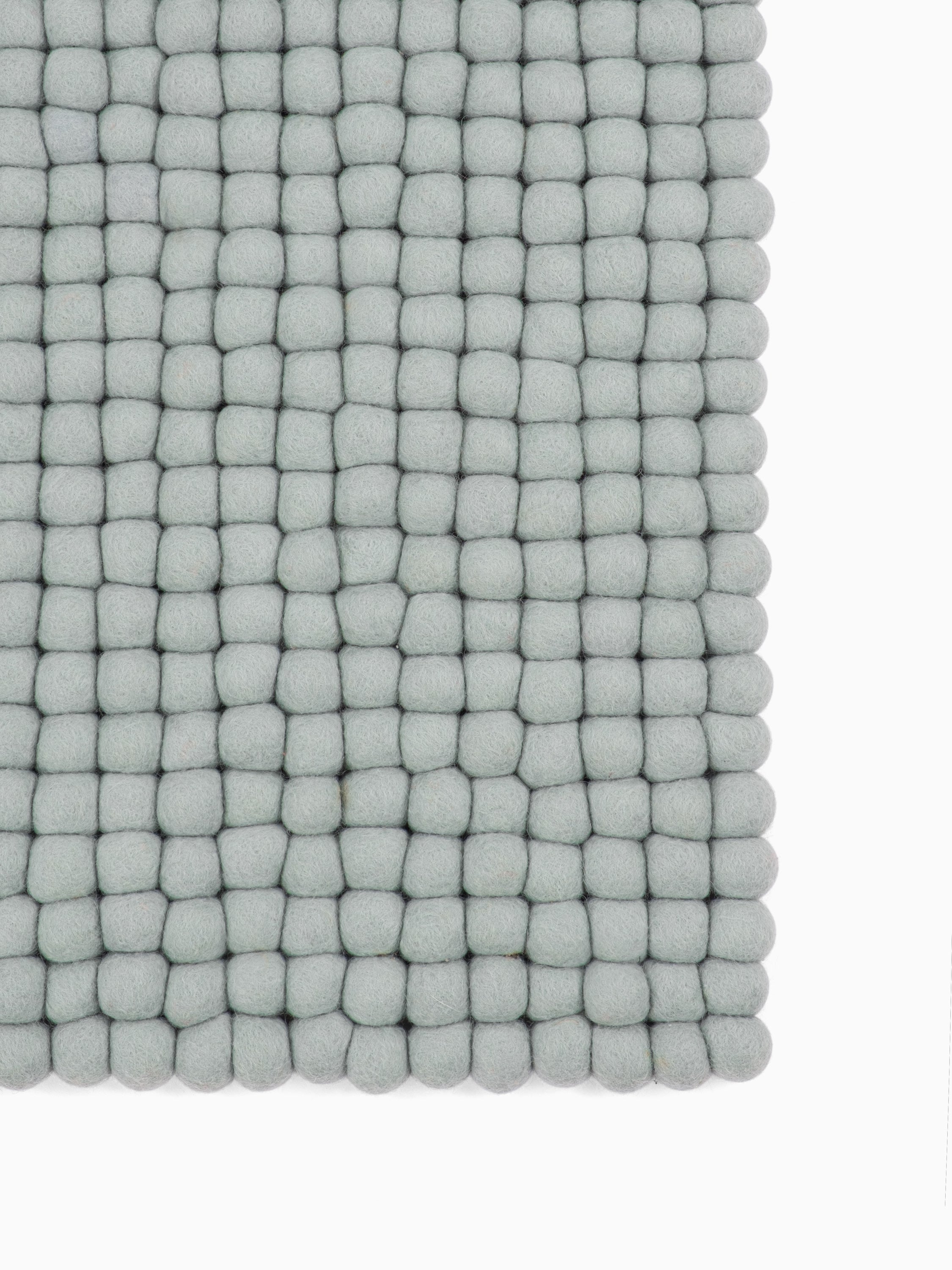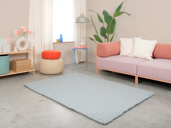 Liv is a felt ball rug in a cool light blue. It brings clarity and lightness and makes small rooms feel larger. Pairs with white, oak and neutral tones—either as a calm base or a fresh accent. Soft, sound-dampening and naturally dirt-repellent. Handcrafted in Nepal from 100% pure new wool.