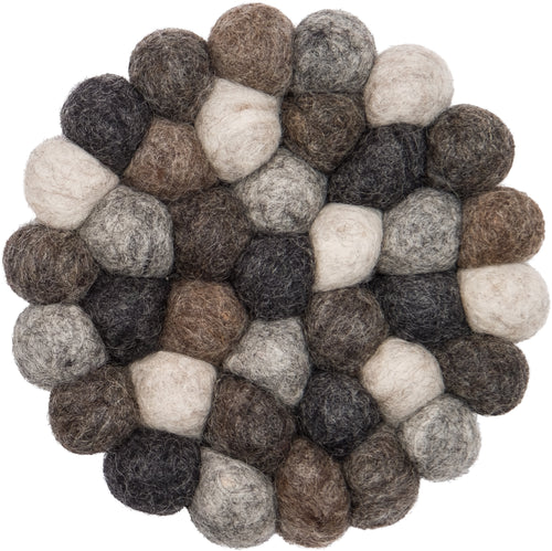 Round, nature coloured Felt Ball Rug made from Virgin Wool.