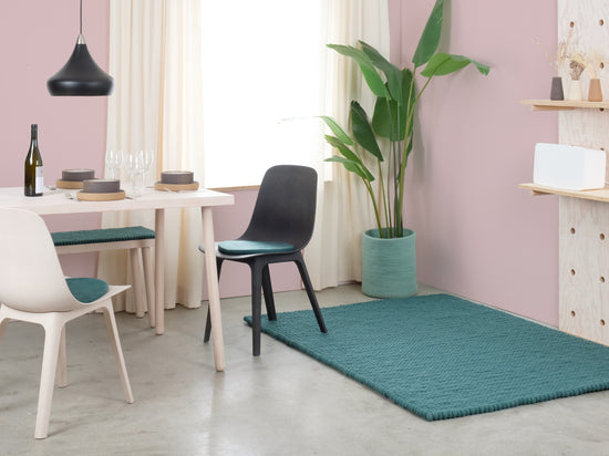 Noah is a felt ball rug in deep petrol. Powerful, clear and still relaxing—use as a statement piece or a quiet base. Works with light wood, concrete and neutral colours. Noticeably soft, durable and easy to care for. Handcrafted in Nepal from 100% pure new wool.