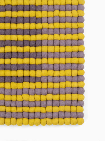 Rectangular, felt ball rug, made from pure new wool.
