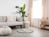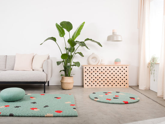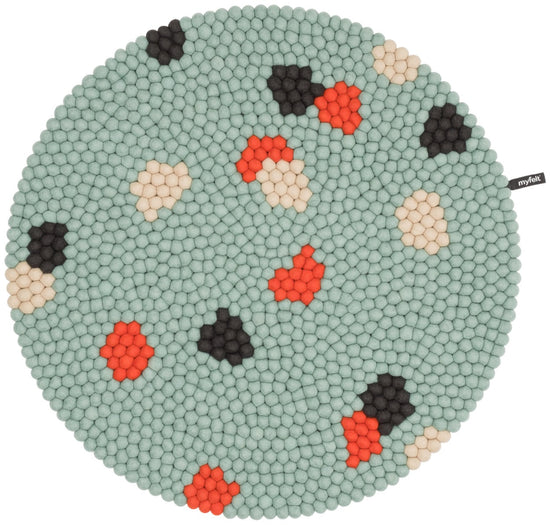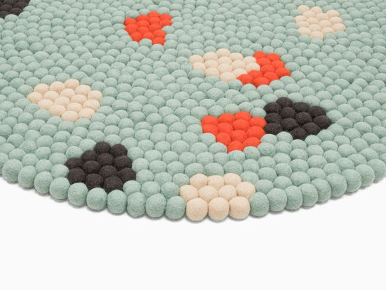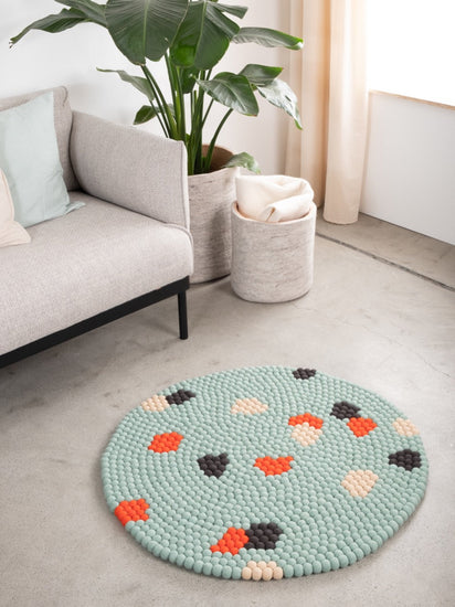 Round turquoise Felt Ball Rug made from Virgin Wool.