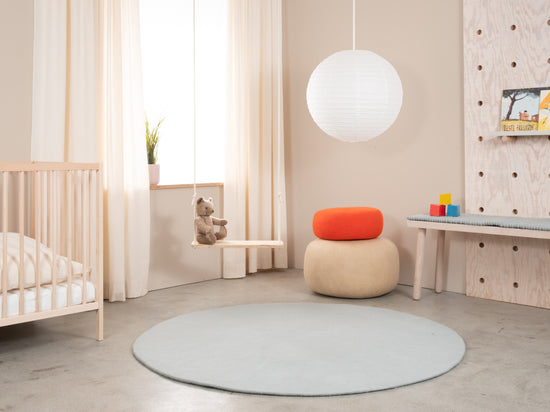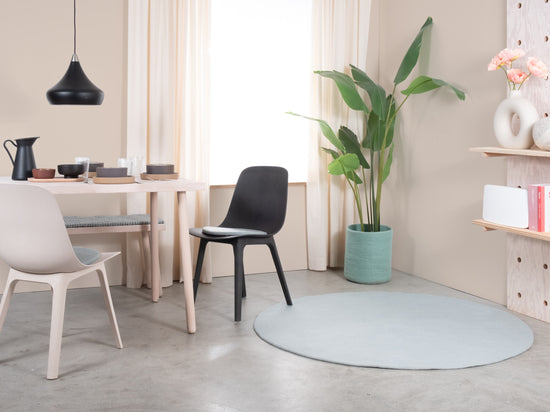 Liv is a felt rug in a cool light blue. It brings clarity and lightness and makes small rooms feel larger. Pairs with white, oak and neutral tones—either as a calm base or a fresh accent. Soft, sound-dampening and naturally dirt-repellent. Handcrafted in Nepal from 100% pure new wool.