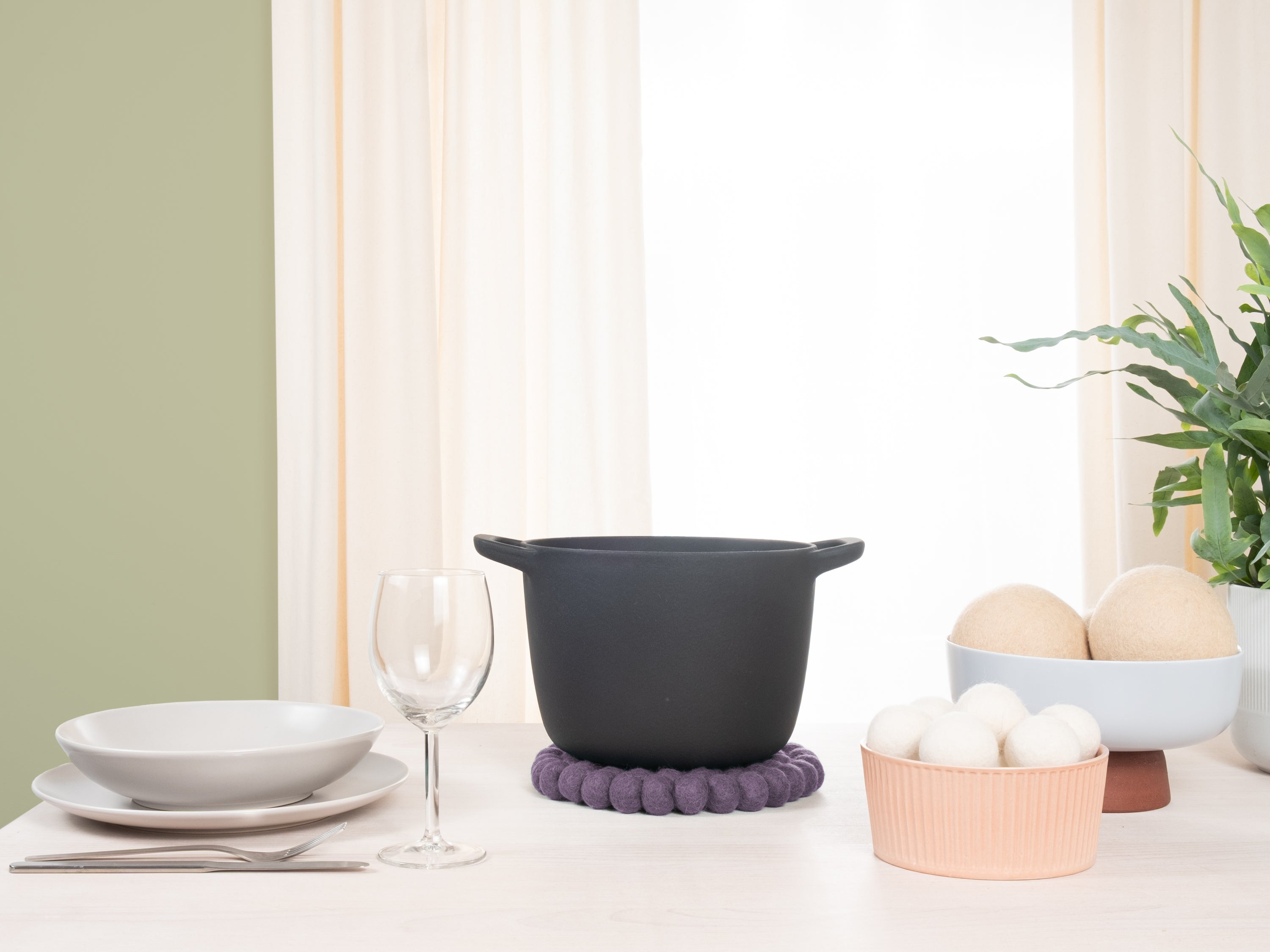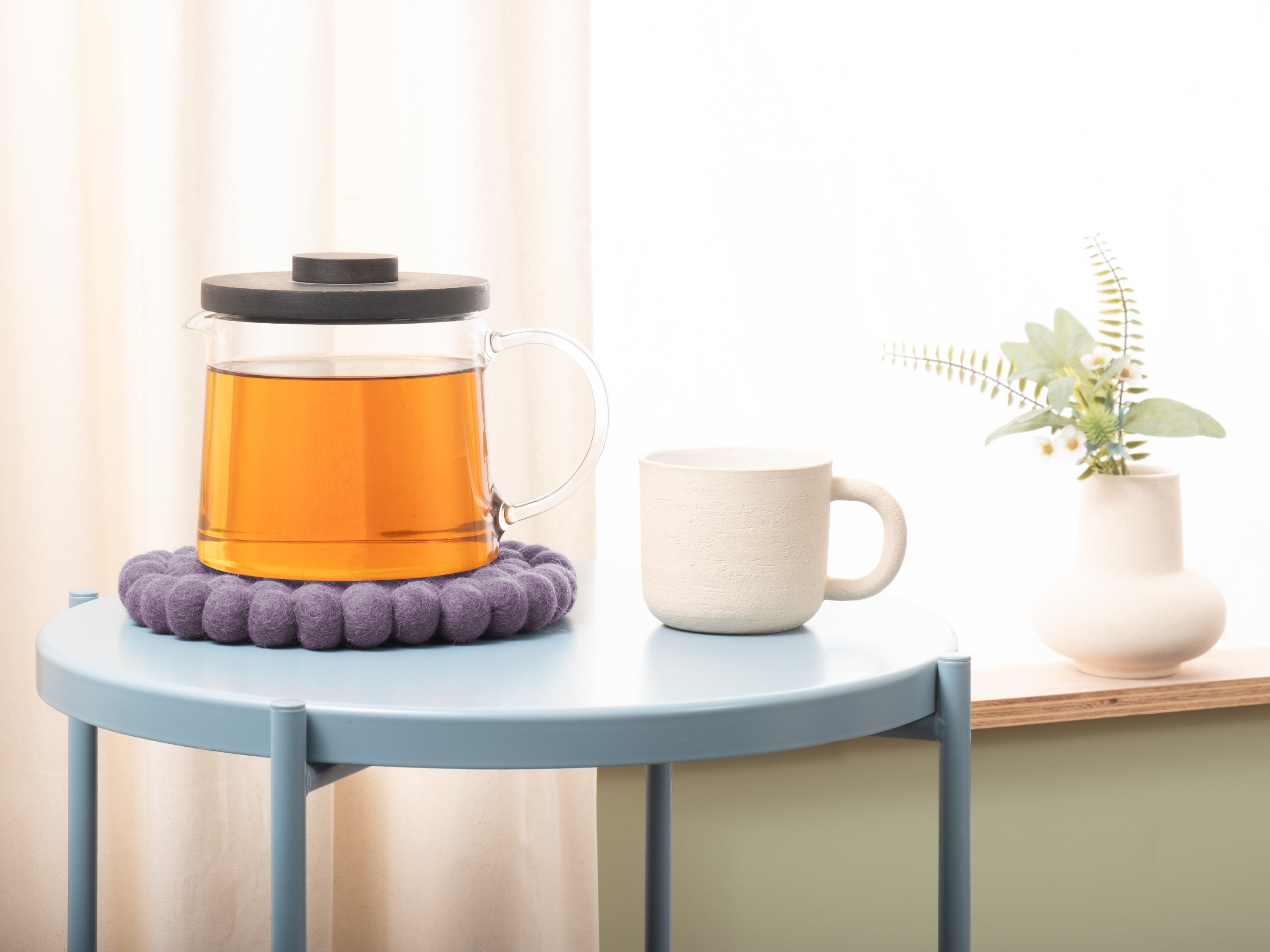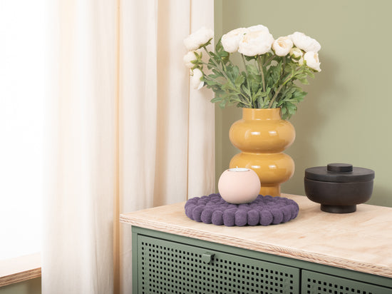 Round, violet trivet made of pure new wool | myfelt