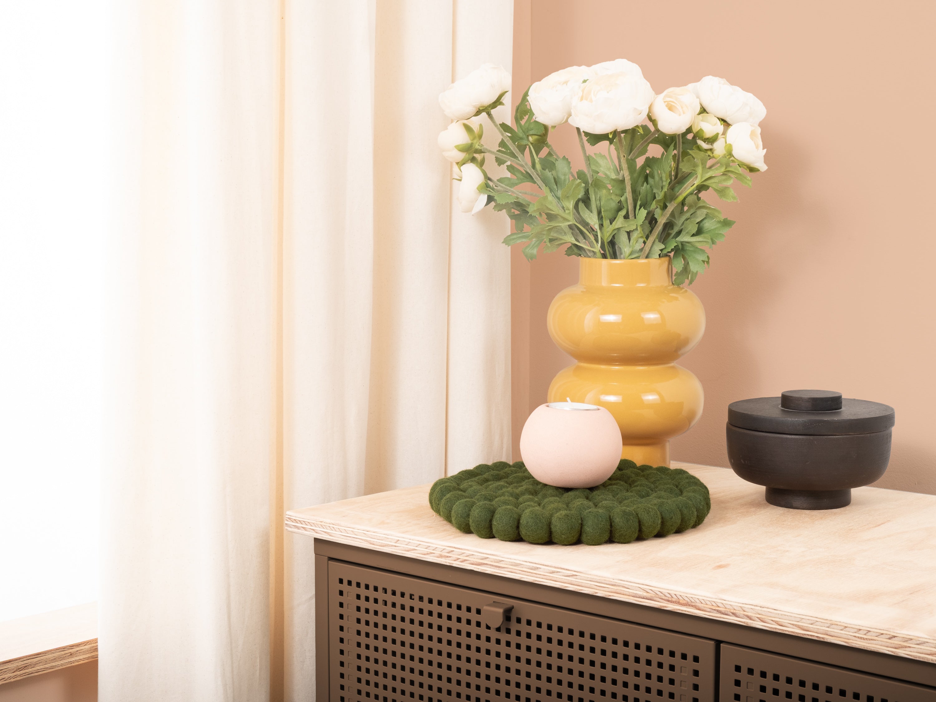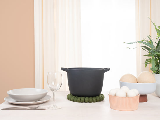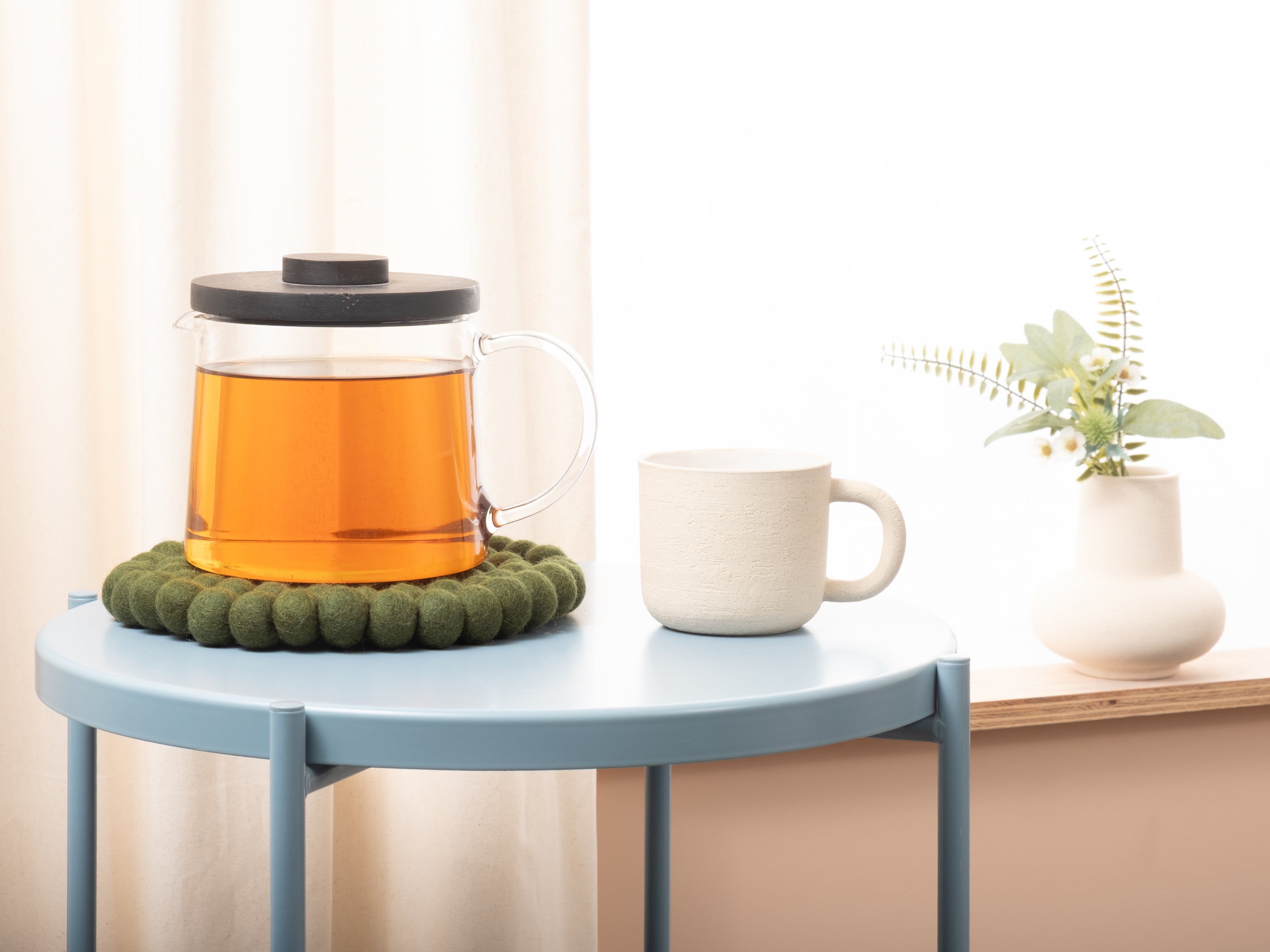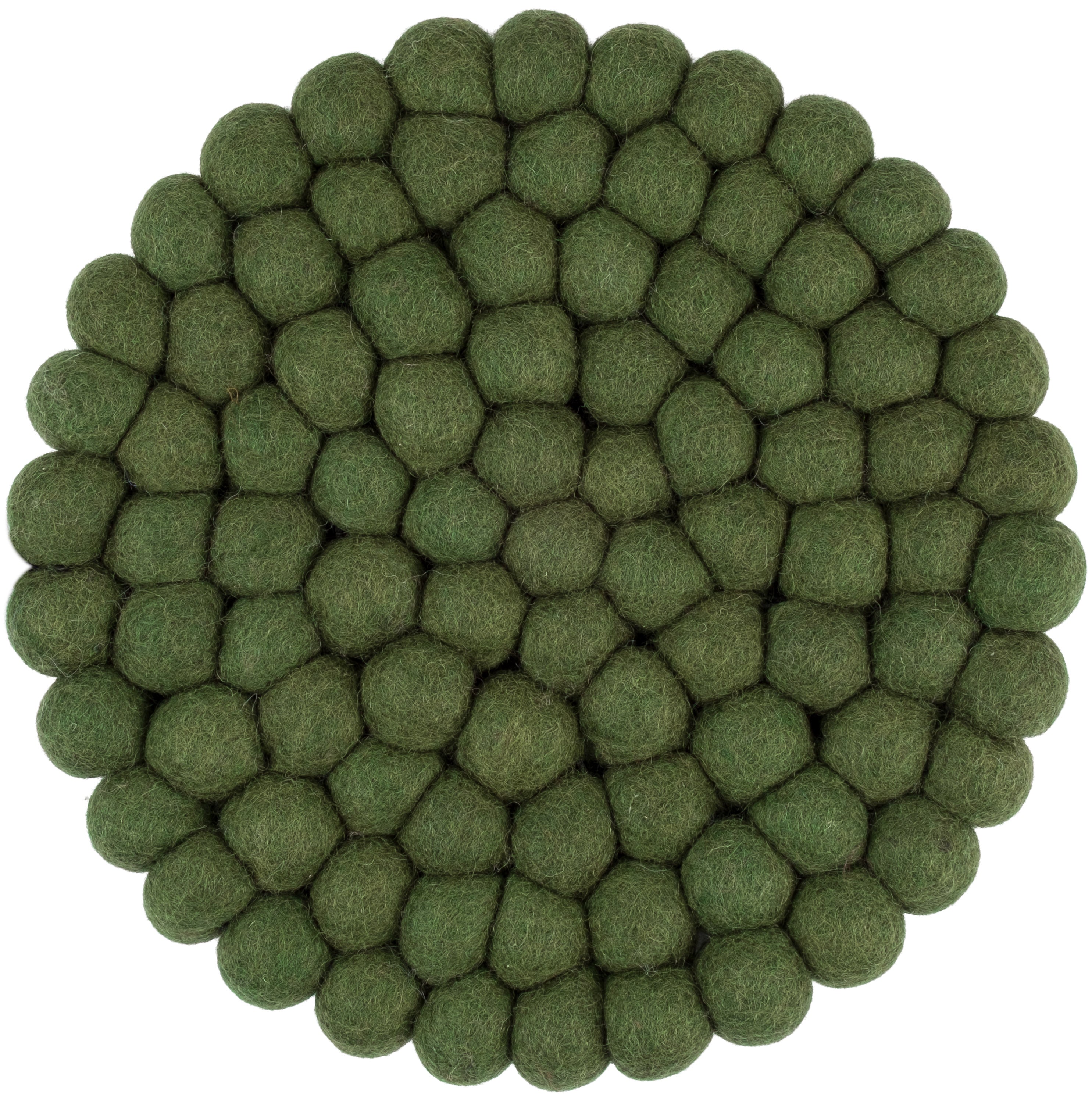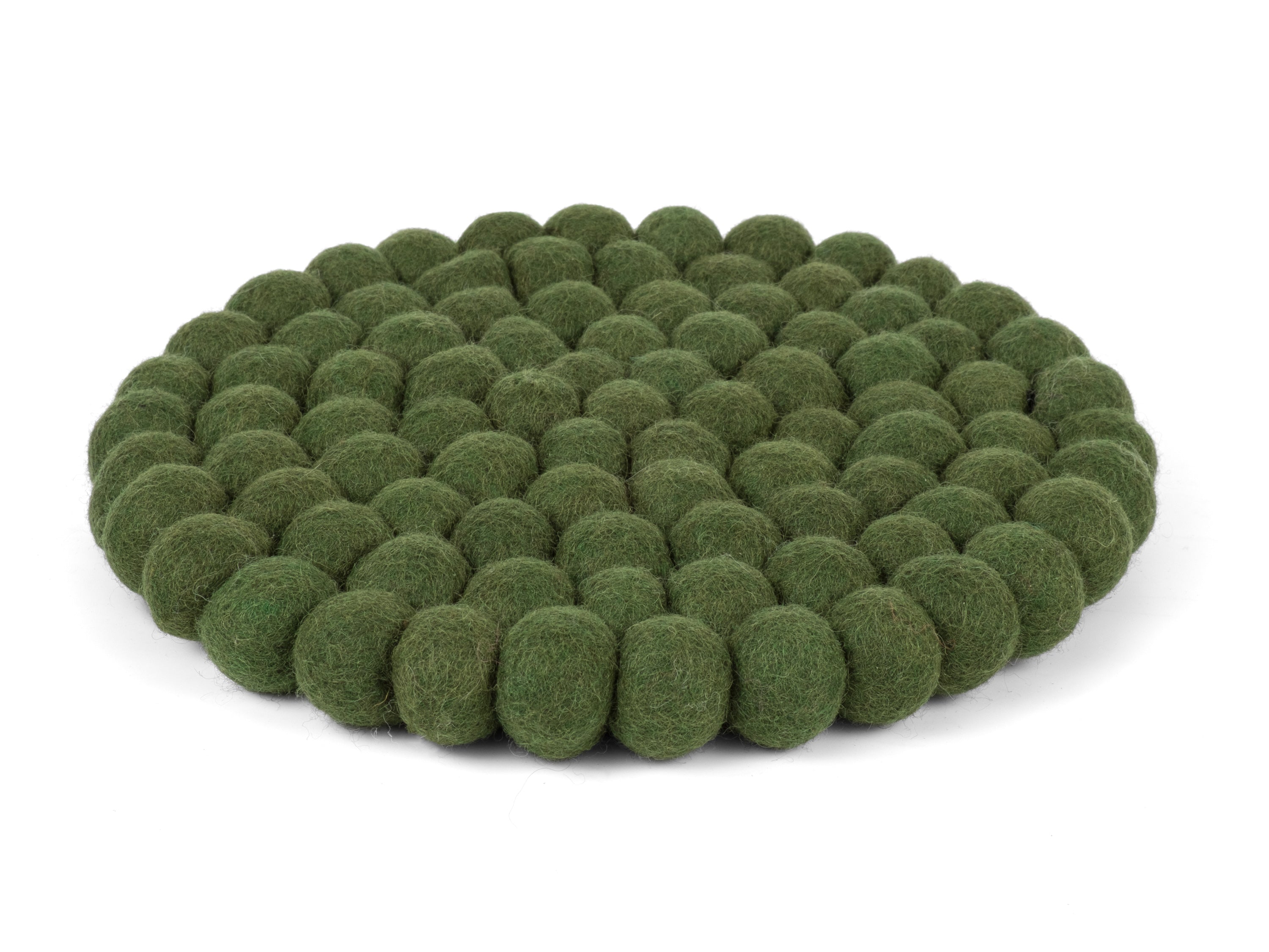 The trivet Jost in the colour dark green combines functionality with charming design. Robust, heat-resistant, water- and dirt-repellent, and reversible. Made from pure new wool, handcrafted in Nepal under fair conditions.
