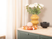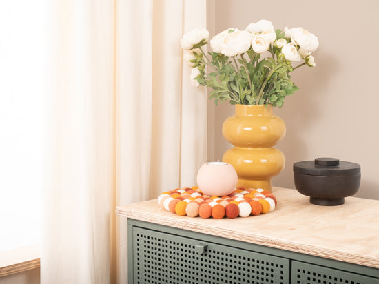 The trivet Juna in the colour multicolour combines functionality with charming design. Robust, heat-resistant, water- and dirt-repellent, and reversible. Made from pure new wool, handcrafted in Nepal under fair conditions.