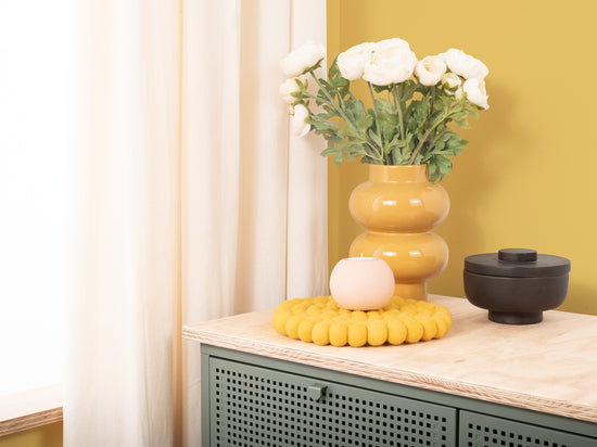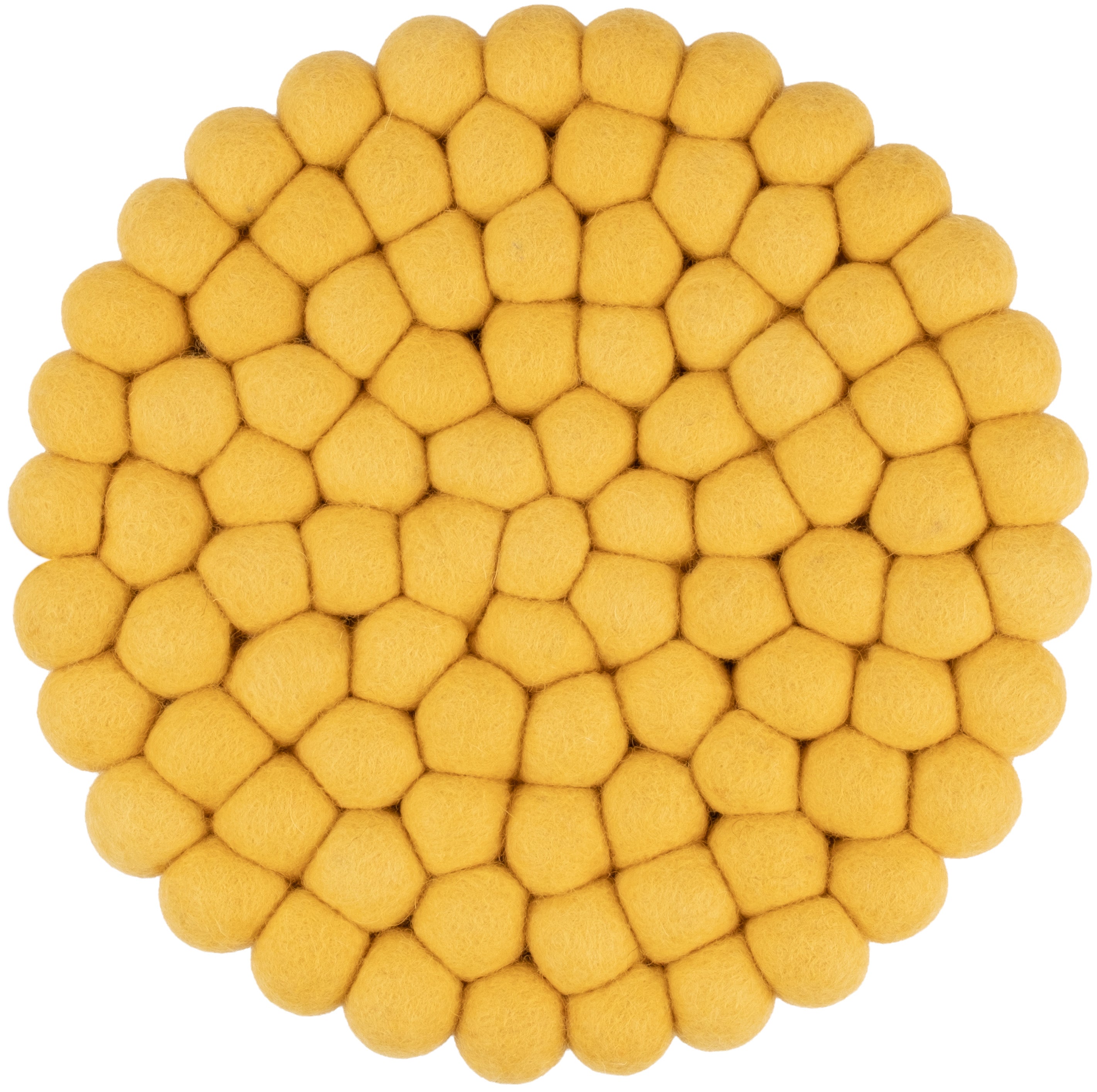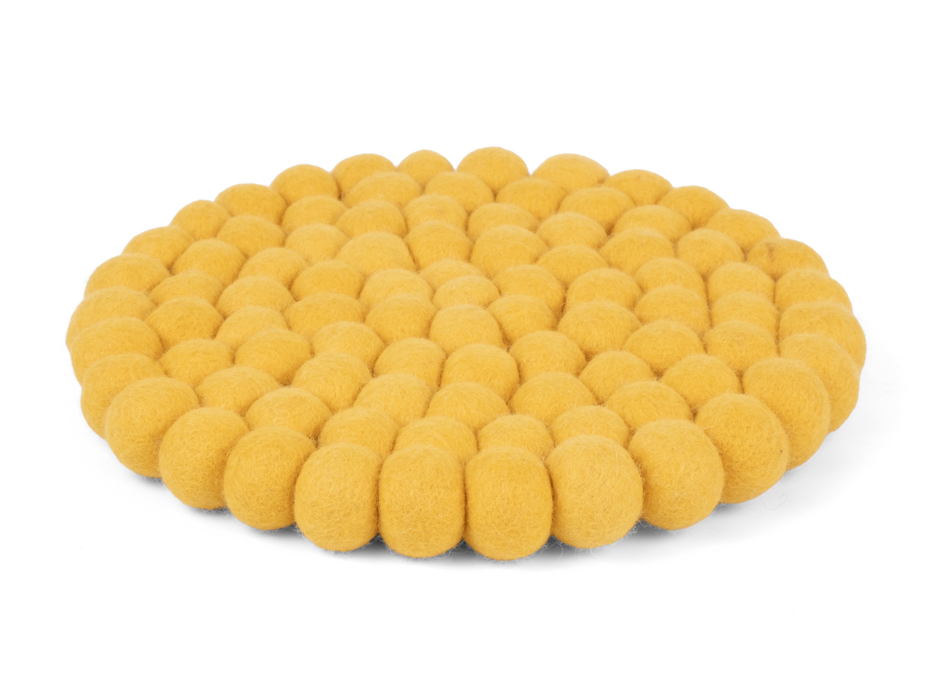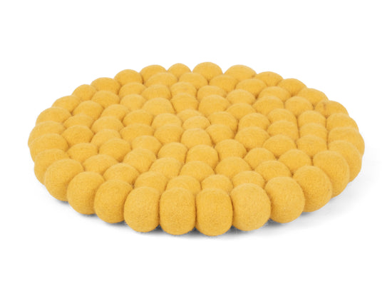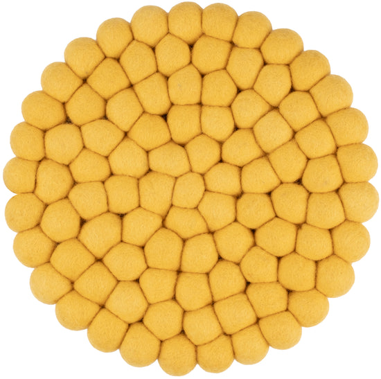 Round, yellow trivet made of pure new wool | myfelt