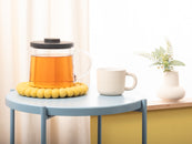 The trivet Kira in the colour yellow combines functionality with charming design. Robust, heat-resistant, water- and dirt-repellent, and reversible. Made from pure new wool, handcrafted in Nepal under fair conditions.