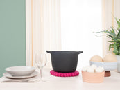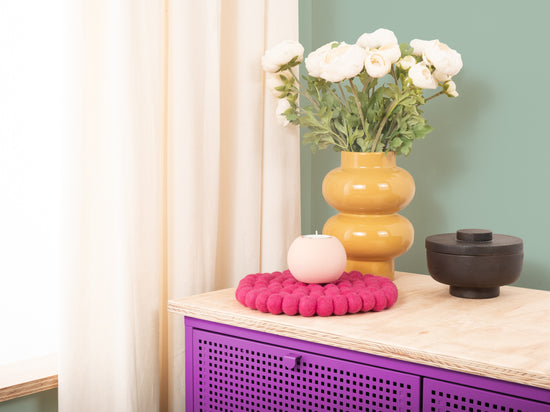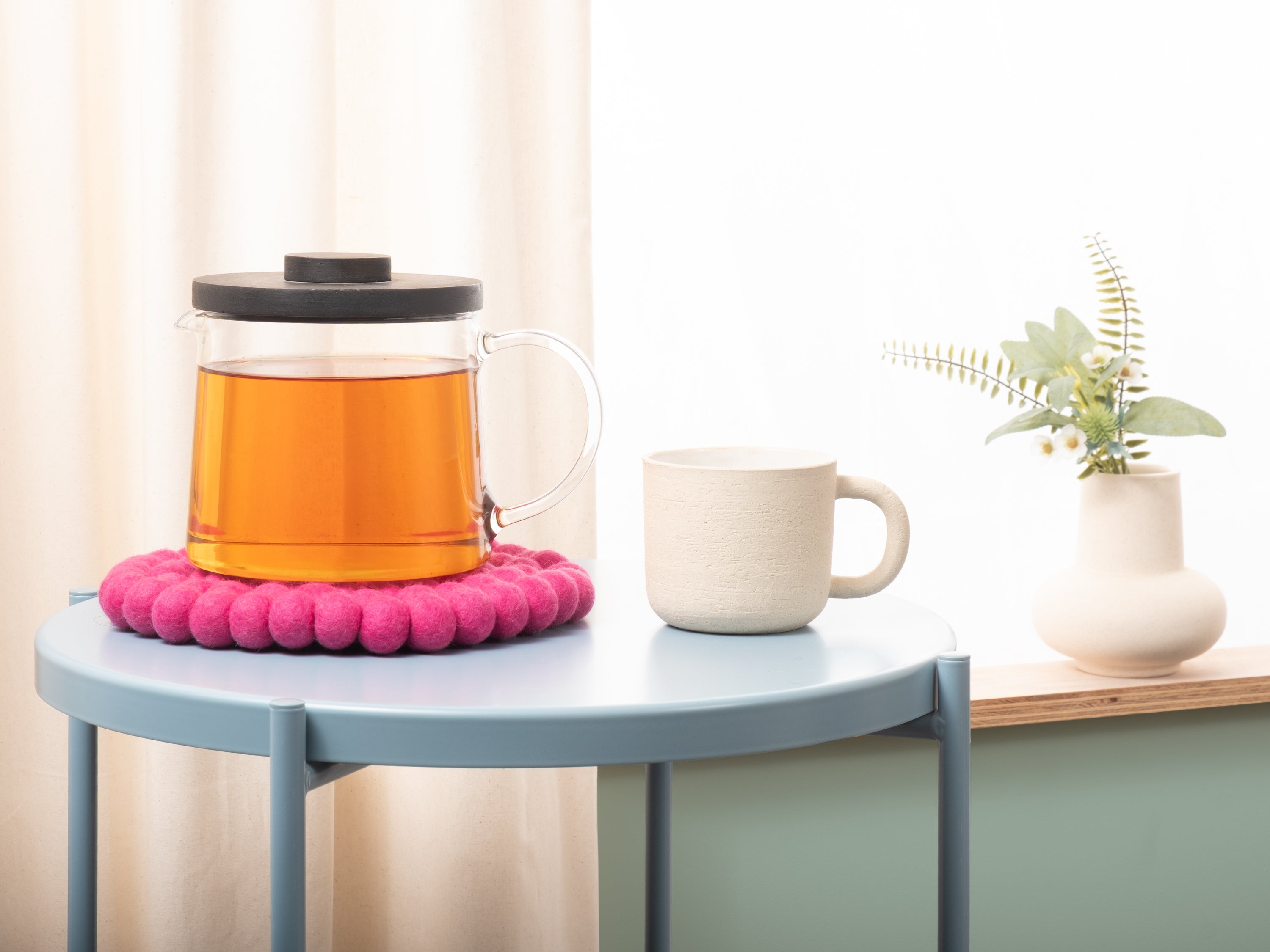 The trivet Lilli in the colour pink combines functionality with charming design. Robust, heat-resistant, water- and dirt-repellent, and reversible. Made from pure new wool, handcrafted in Nepal under fair conditions.