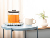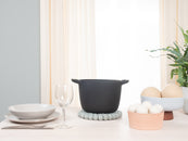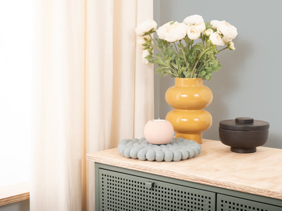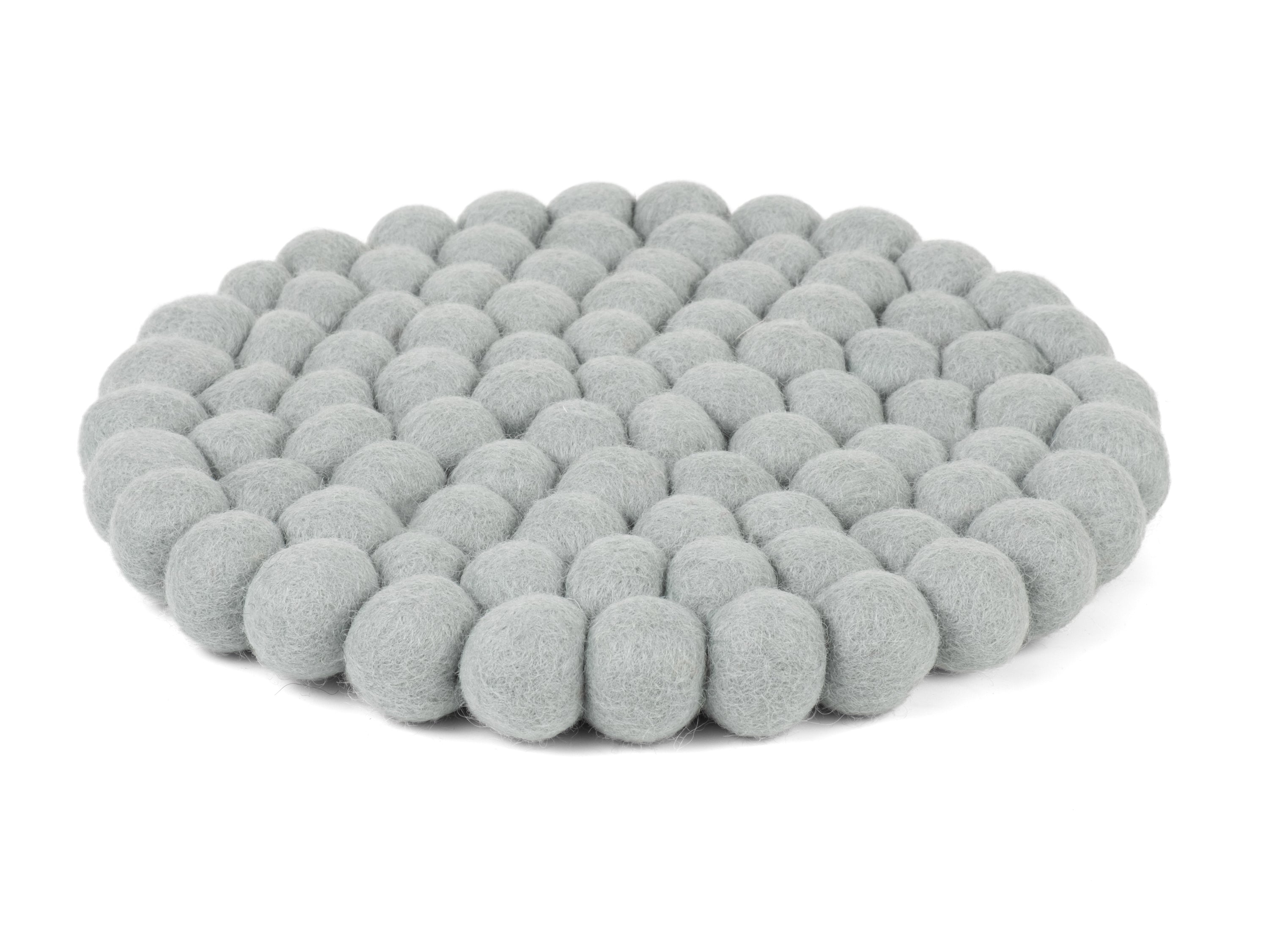 The trivet Liv in the colour light blue combines functionality with charming design. Robust, heat-resistant, water- and dirt-repellent, and reversible. Made from pure new wool, handcrafted in Nepal under fair conditions.