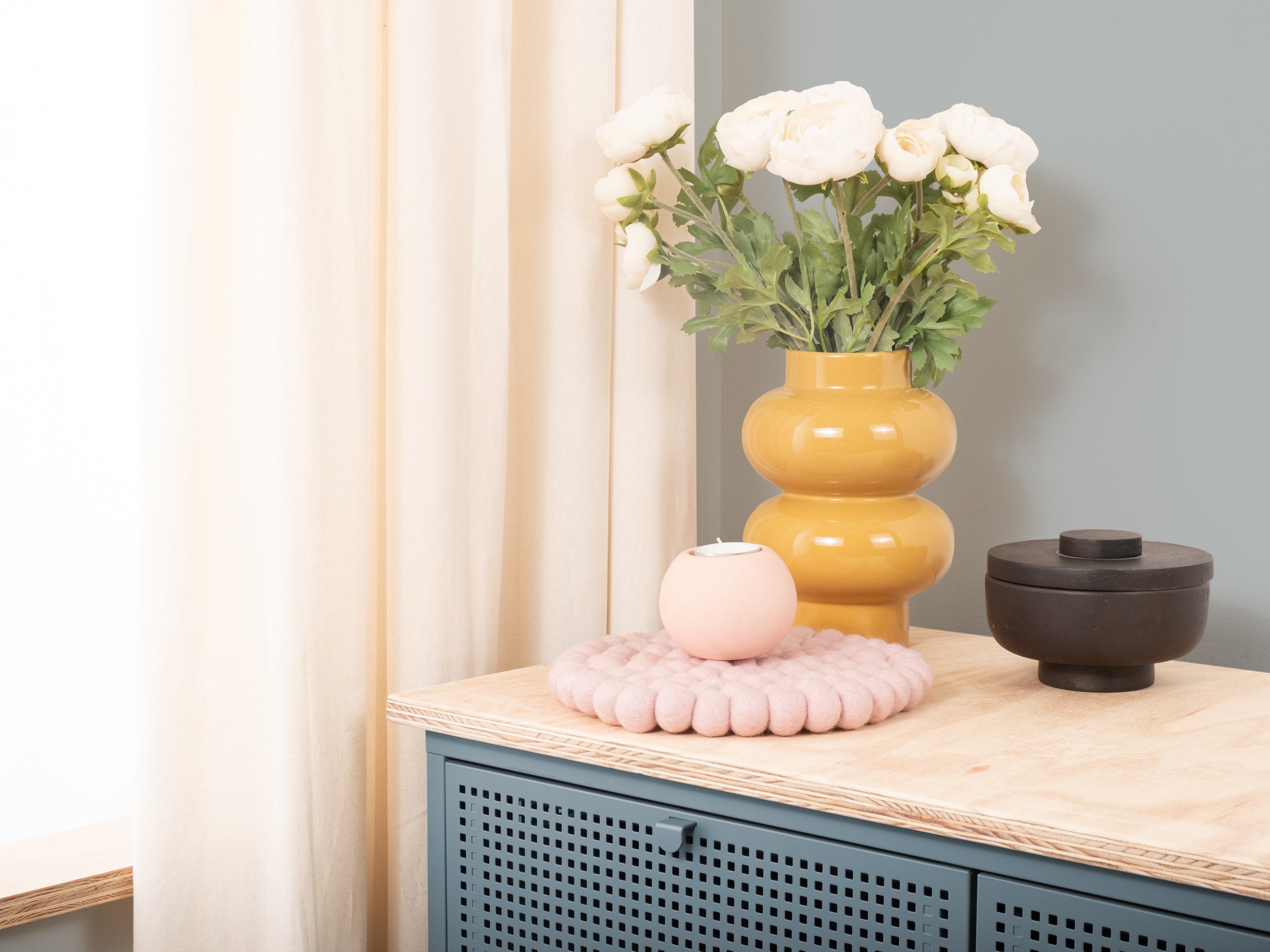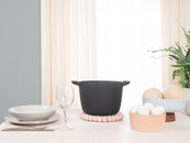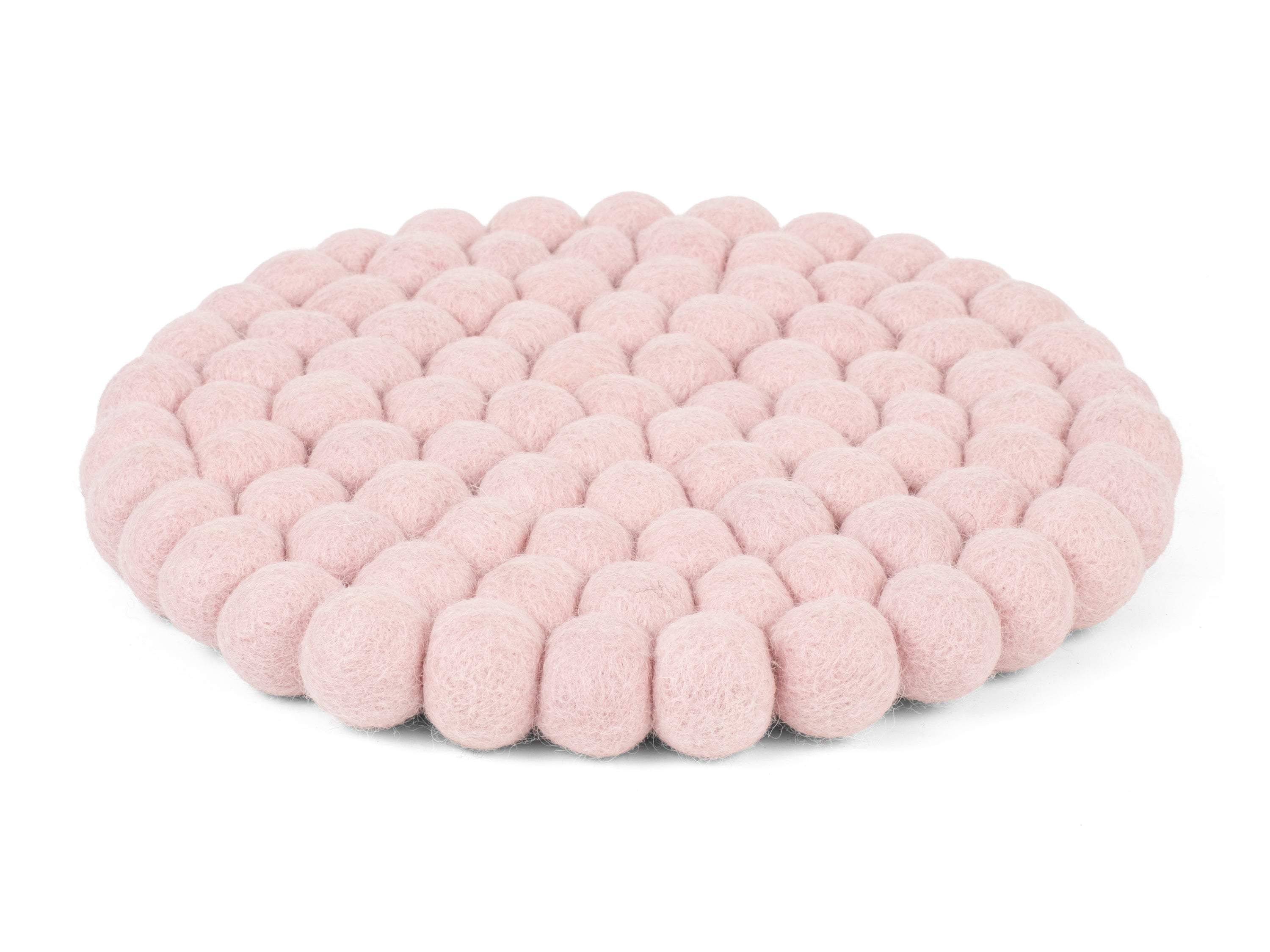 The trivet Mona in the colour soft pink combines functionality with charming design. Robust, heat-resistant, water- and dirt-repellent, and reversible. Made from pure new wool, handcrafted in Nepal under fair conditions.
