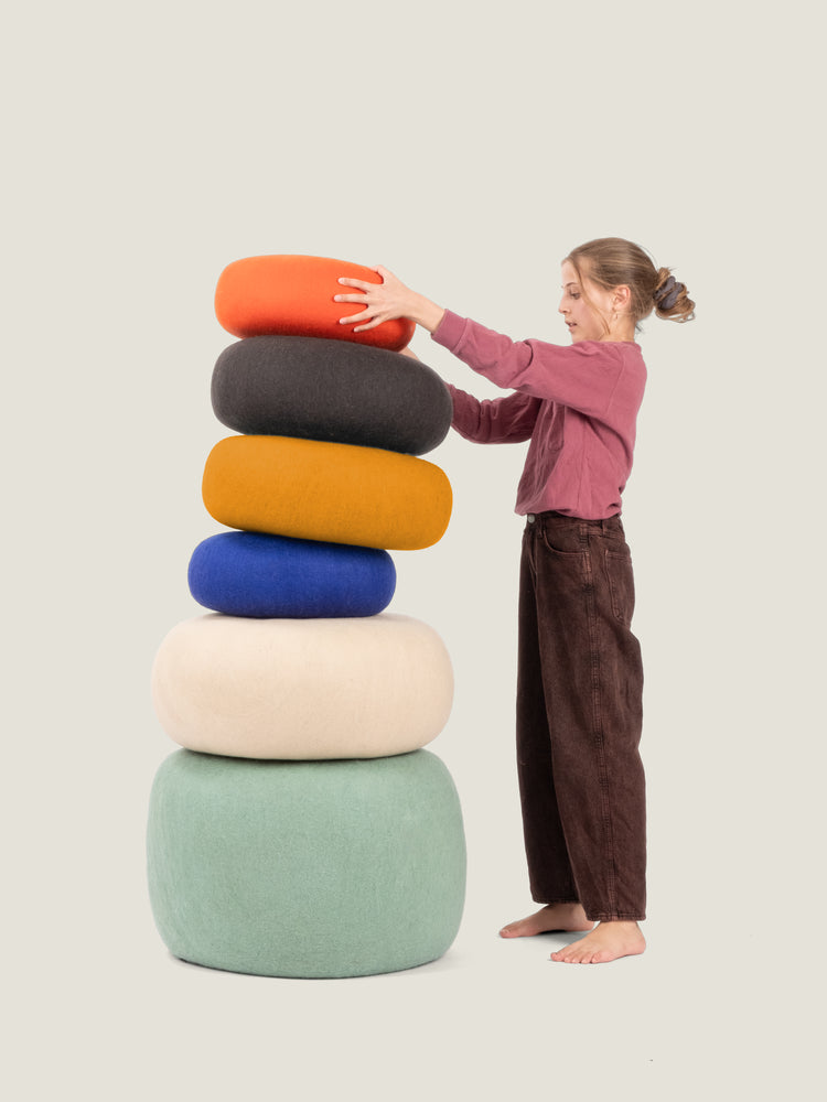 The coral-colored Pouf Mats is an all-round handy and practical seat. As a high-quality natural product, the stool is elaborately felted by hand in many layers and consists of 100% finest new wool (pure wool filling without polyester or synthetics). Whether as a meditation and seat cushion or a high-quality design element, it is the perfect addition to any living space. With its unique design, versatility and high level of comfort, it not only offers additional seating, but also gives living spaces a stylish touch. Thanks to its full wool felt filling, the pouf is water and dirt repellent and offers optimal strength.