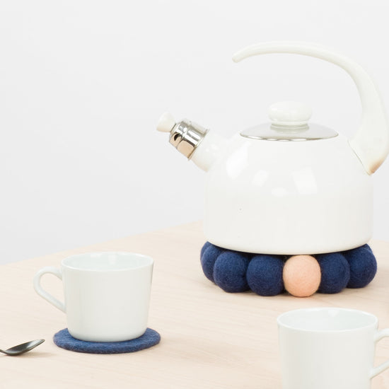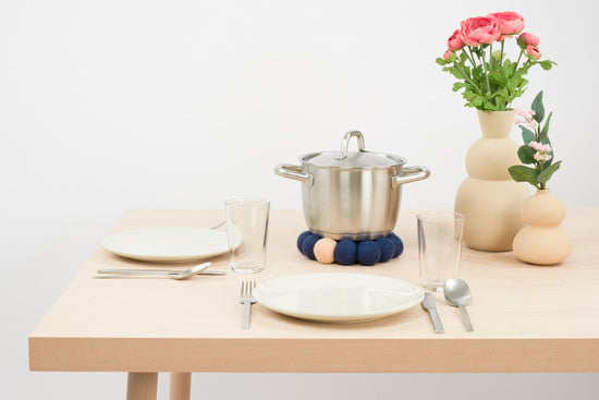 With its punctual colour accent and the 4 cm large felt balls, each individually made by hand, the dark blue coaster Alva is a real eye-catcher on every dining table. Even under a hot pot, it is still clearly visible and makes the interior shine as a stylish design element and beautiful accessory.
