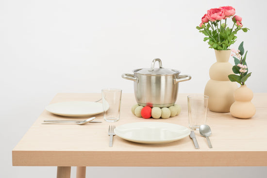 With its punctual colour accent and the 4 cm large felt balls, each individually made by hand, the green-beige coaster Lutz is a real eye-catcher on every dining table. Even under a hot pot, it is still clearly visible and makes the interior shine as a stylish design element and beautiful accessory.