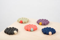 Round, green-beige Coaster made from Virgin Wool.